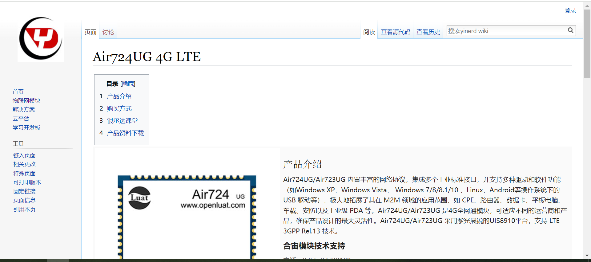 官方文档地址:http://wiki.yinerda.com/index.php/Air724UG_4G_LTE