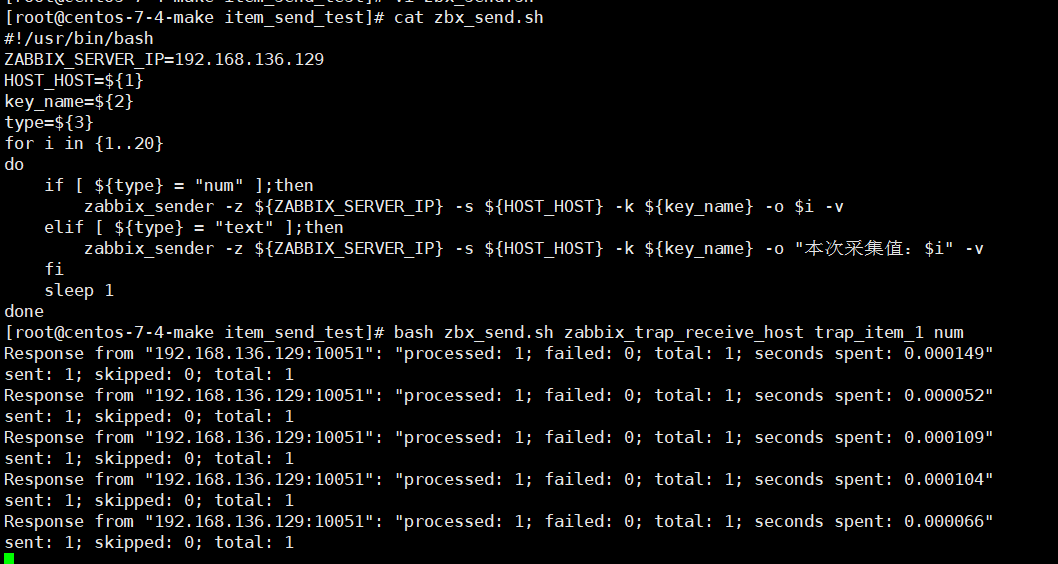 zabbix_sender -z ${ZABBIX_SERVER_IP} -s ${HOST_HOST} -k ${key_name} -o "本次采集值:$i" -v
