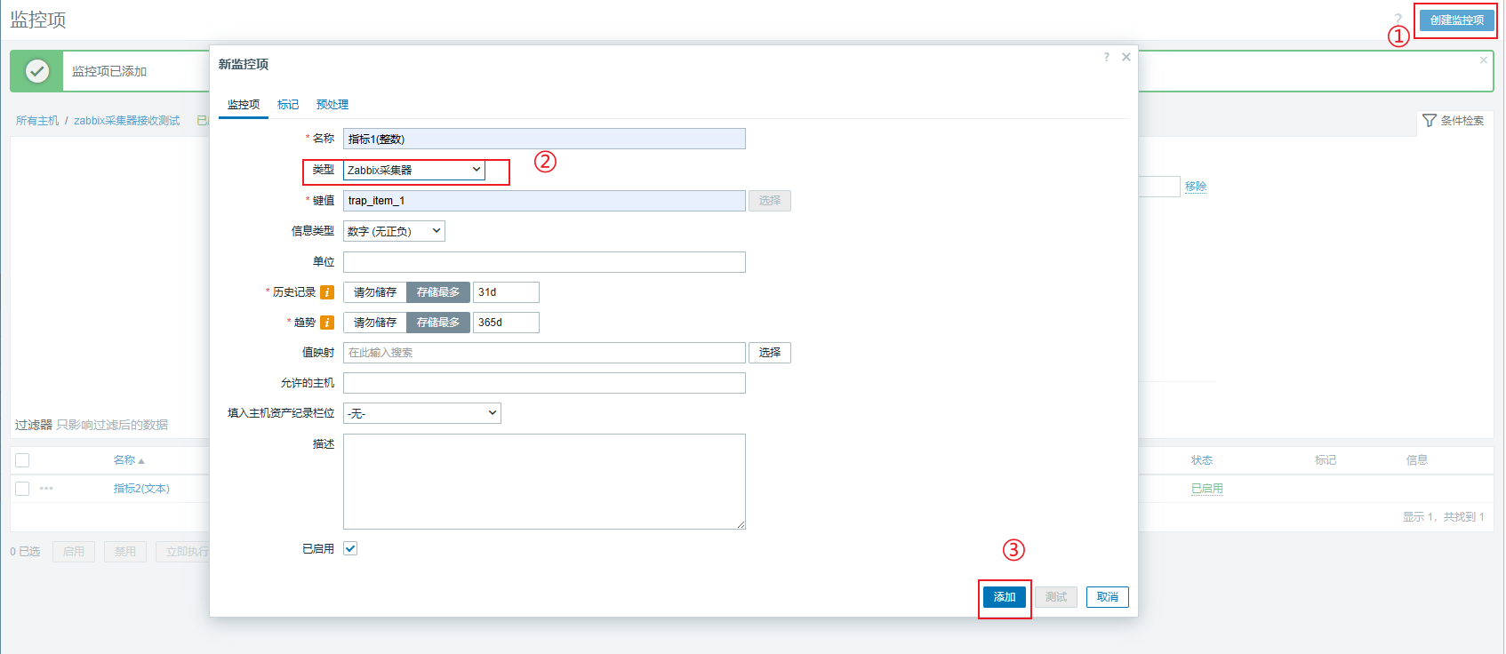 – 创建"Zabbix采集器(zabbix trap)"类型指标