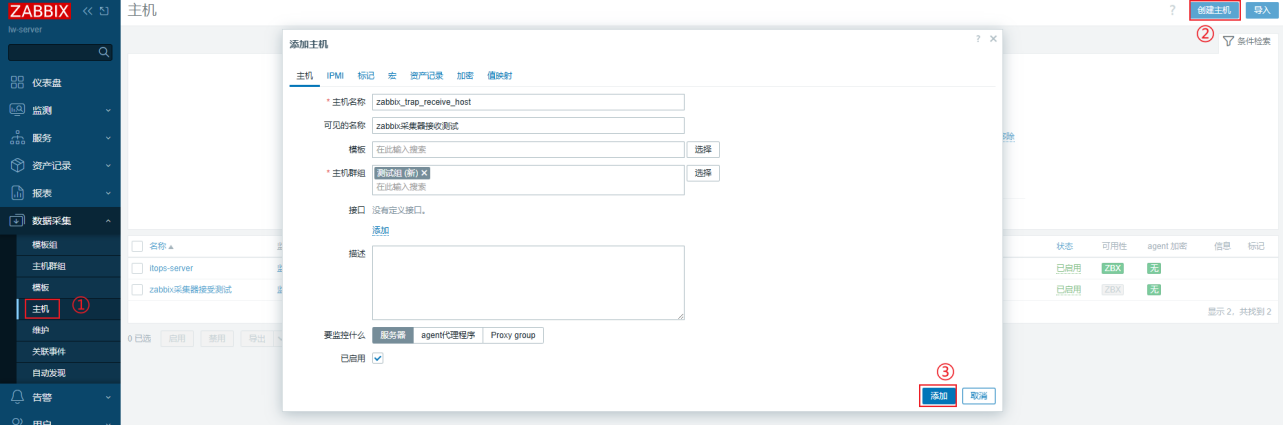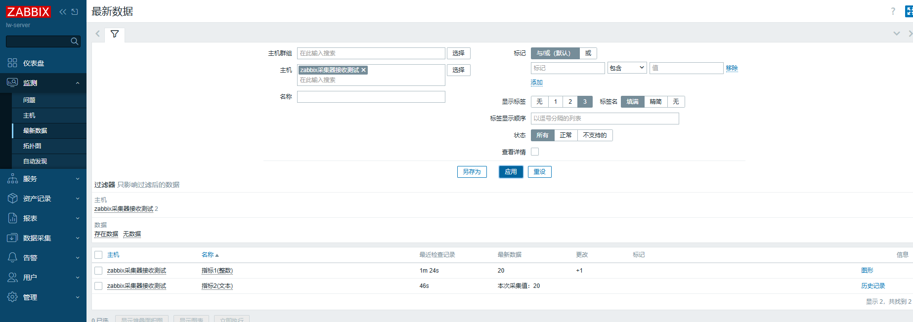 注: 需要配合监控项为Zabbix采集器(zabbix trap)类型指标才可接收推送数据