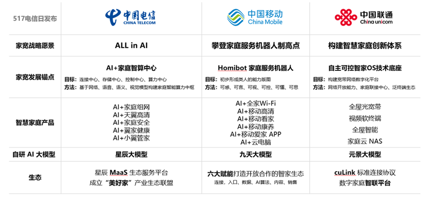 在中国 2024 世界电信和信息社会日大会上,三大运营商均有发布全新的家宽发展战略,我们整理如下:
