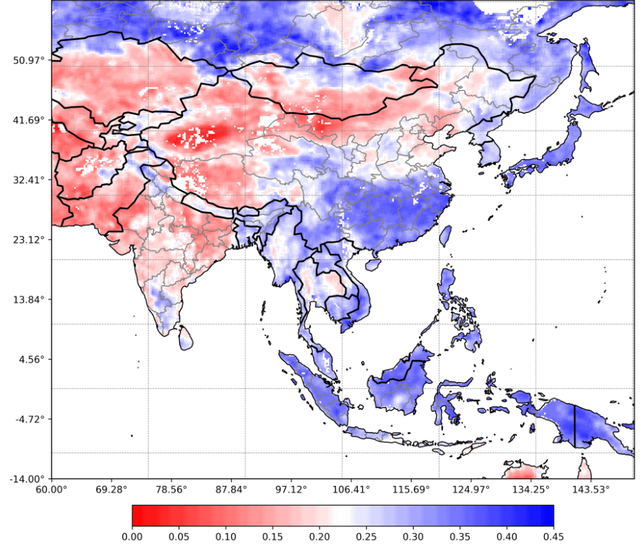 遥感土壤水分产品能提供每日土壤表层水分信息,其高覆盖和高时效性可在水资源分配和洪灾监测与评估中发挥重要作用。图3为东南亚及南亚2023年5月每日地表土壤水分监测动态图(数据源:SMAP Enhanced L3产品)。