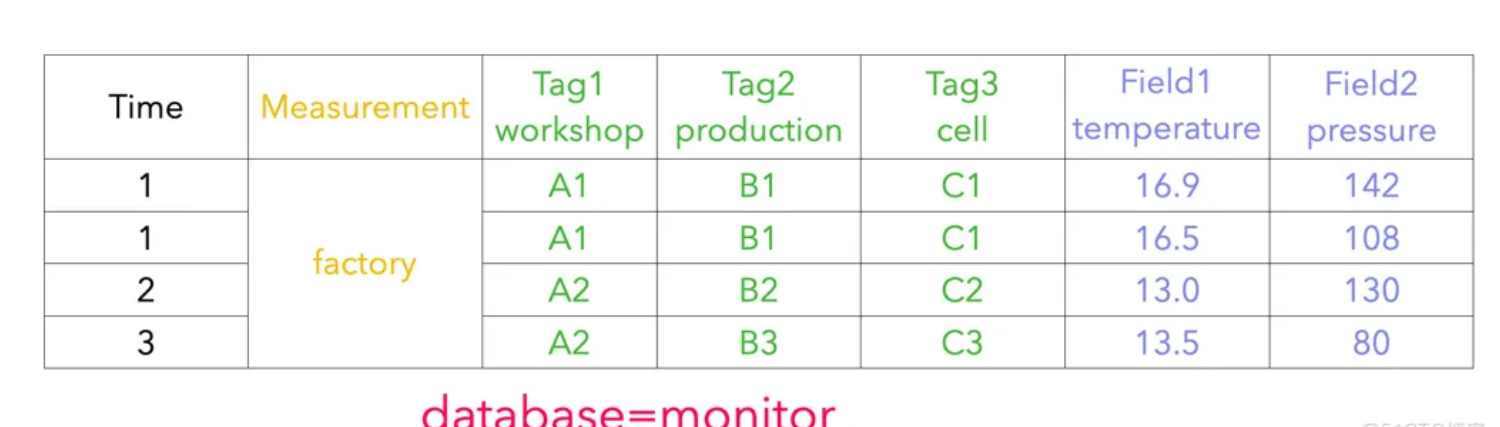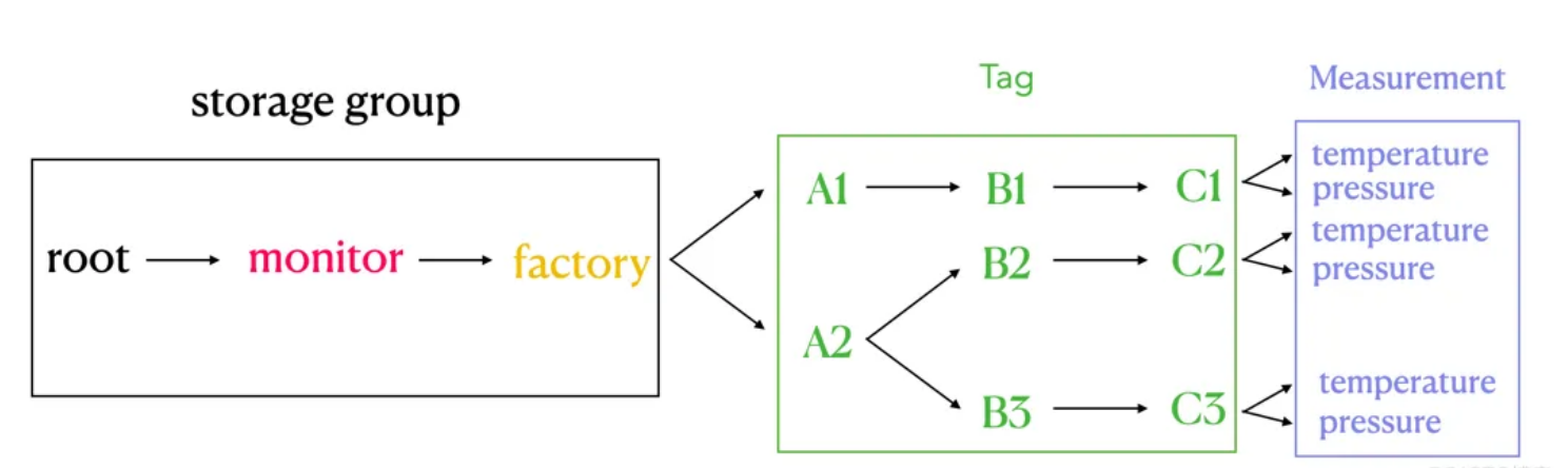 我们在 IoTDB 中使用 database 和 measurement 之间的路径来表达 InfluxDB tag 的概念,也就是图中右侧绿色方框的部分。
