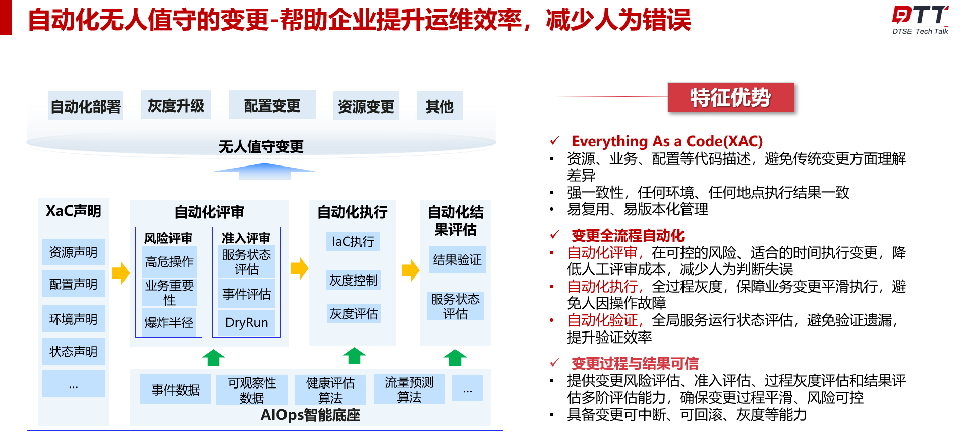 2. 通过一系列的变更灰度评估以及中断回滚等保险措施,确保变更过程和结果的安全可信。
