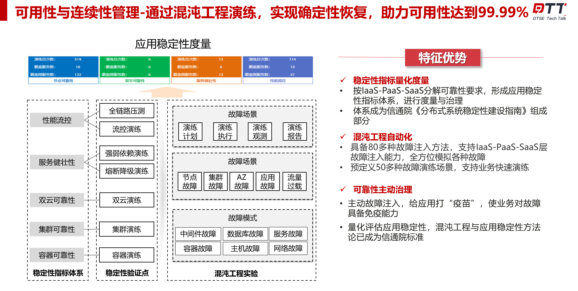 • 可用性与连续性管理:通过混沌工程演练,实现确定性恢复,助力可用性达到99.99%