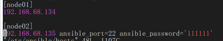 vim + /etc/ansible/hosts