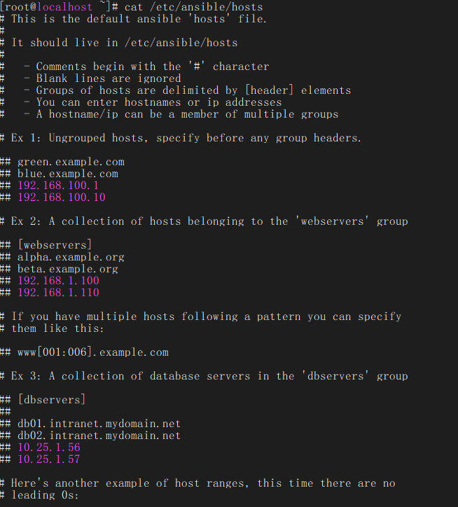 cp /opt/ansible/examples/hosts /etc/ansible