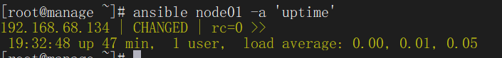 ansible node01 -a 'uptime'