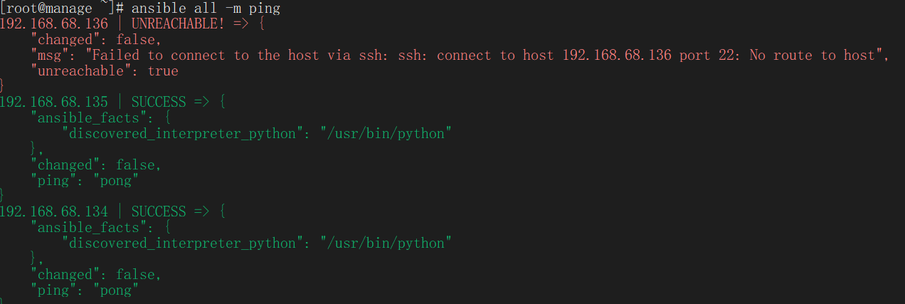 ansible all -m ping