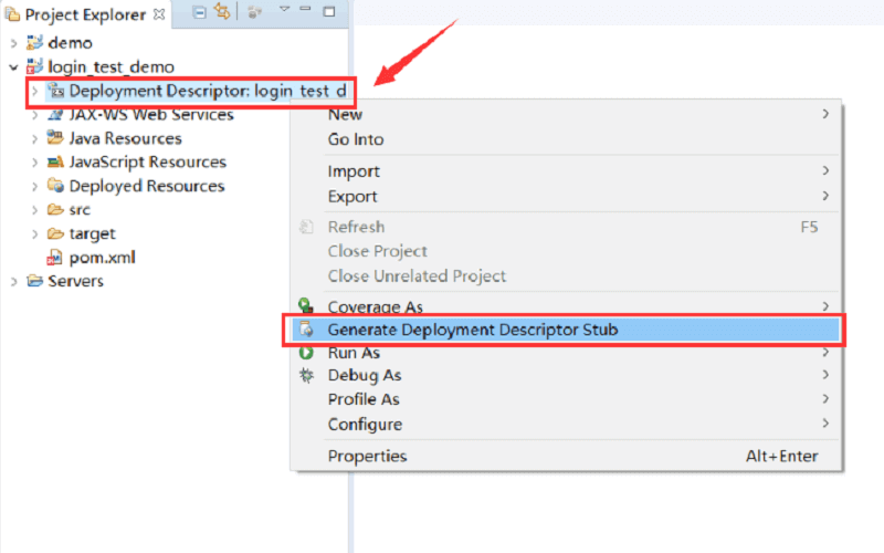 Maven项目刚刚新建好时是报错状态,需要右击项目中的 Deployment Descriptor,点击 Generate Deployment Descriptor Stub。然后,给Maven项目配置Tomcat。