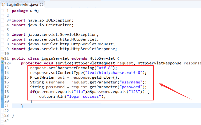 打开 LoginServlet.java,填写登录功能的内部逻辑(如图)。