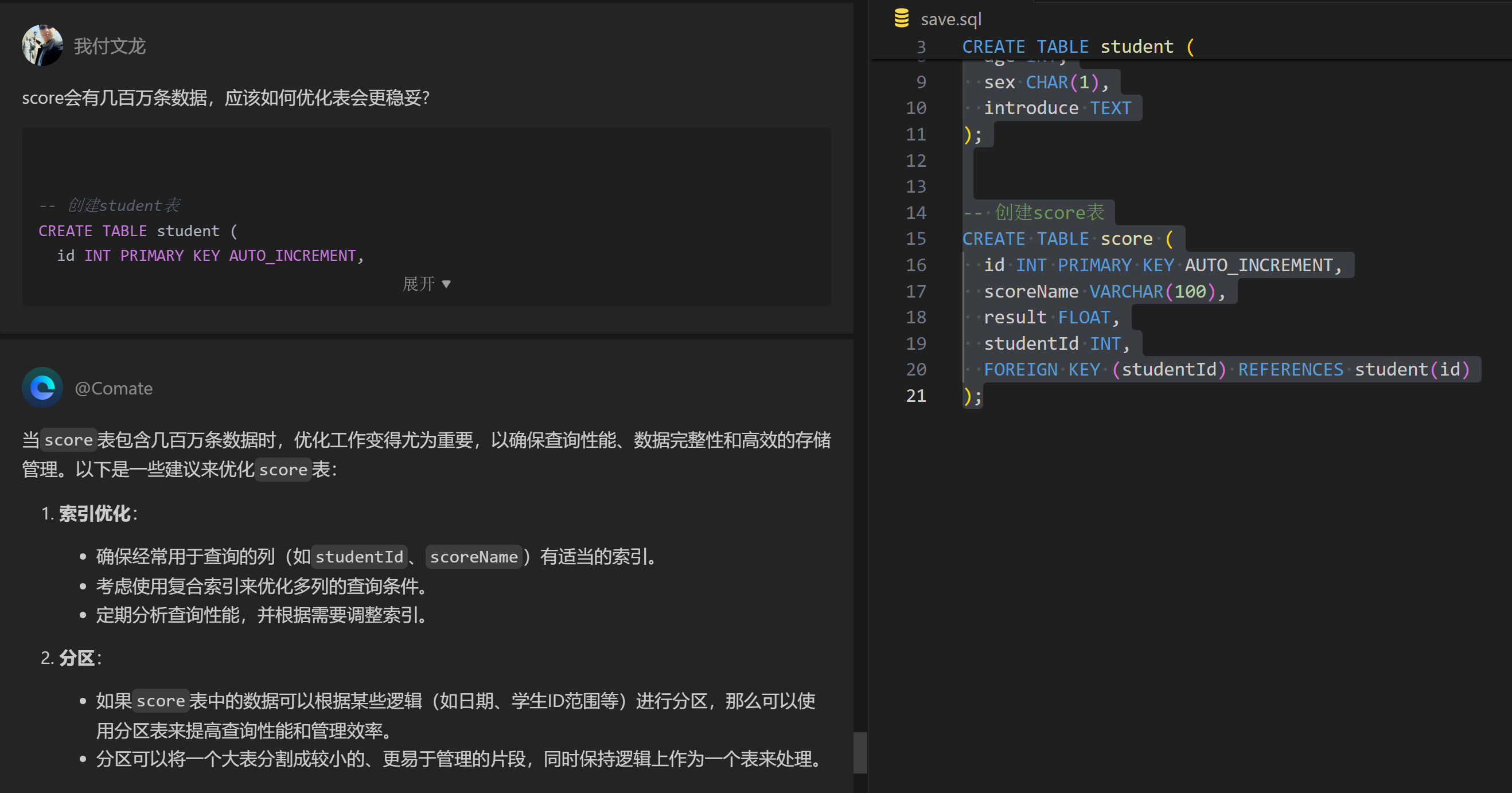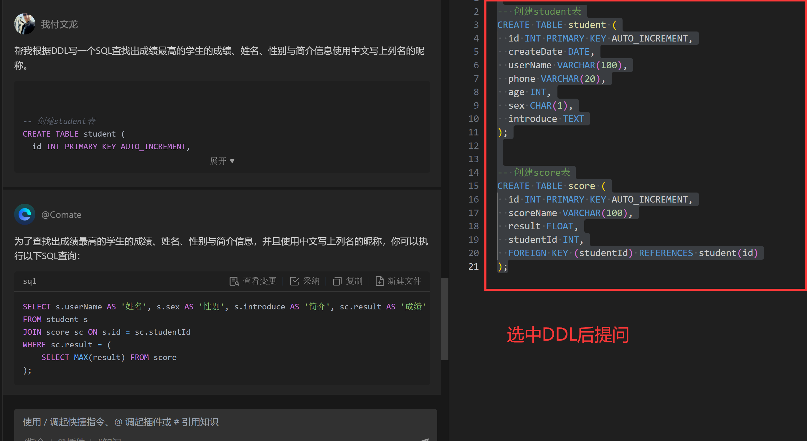 AI代码提示工具可用于教学功能示例——MySQL