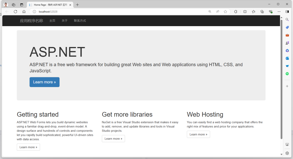 我们点击上方 IIS Express 按钮,启动一下项目,看看是否能顺利运行。