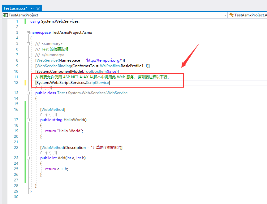 public class Test : System.Web.Services.WebService