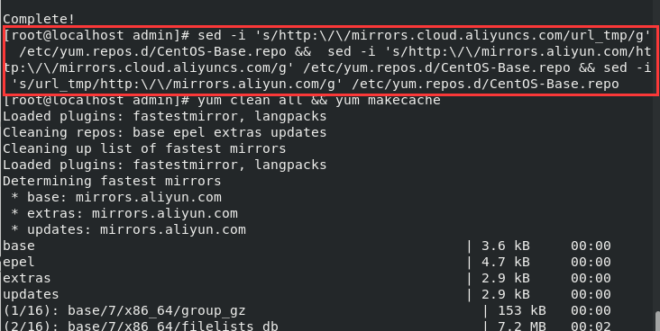 sed -i 's/http:\/\/mirrors.cloud.aliyuncs.com/url_tmp/g' /etc/yum.repos.d/CentOS-Base.repo && sed -i 's/http:\/\/mirrors.aliyun.com/http:\/\/mirrors.cloud.aliyuncs.com/g' /etc/yum.repos.d/CentOS-Base.repo && sed -i 's/url_tmp/http:\/\/mirrors.aliyun.com/g' /etc/yum.repos.d/CentOS-Base.repo
