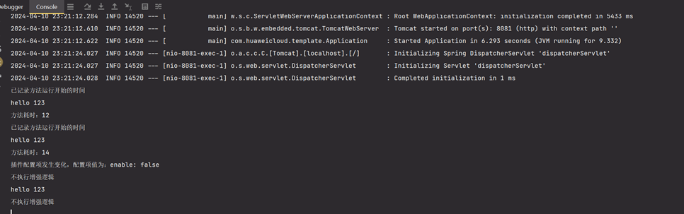 可以看到我们执行first-plugin-demo这个示例的时候:会发现我们执行业务方法的时候,它就会进行织入拦截器,执行对应的onMethodEnter和方法执行完后的onMethodExit方法。