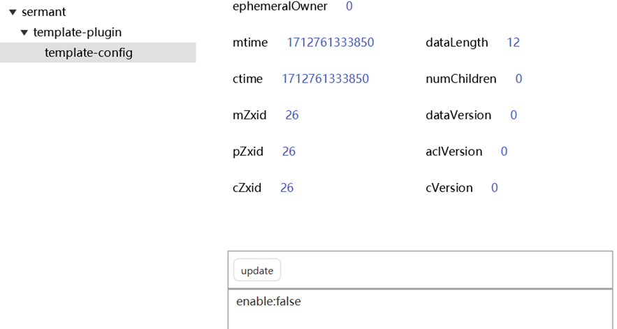 完成之后,我们需要在相应的监听节点下创建一个配置项,来测试动态配置的功能: