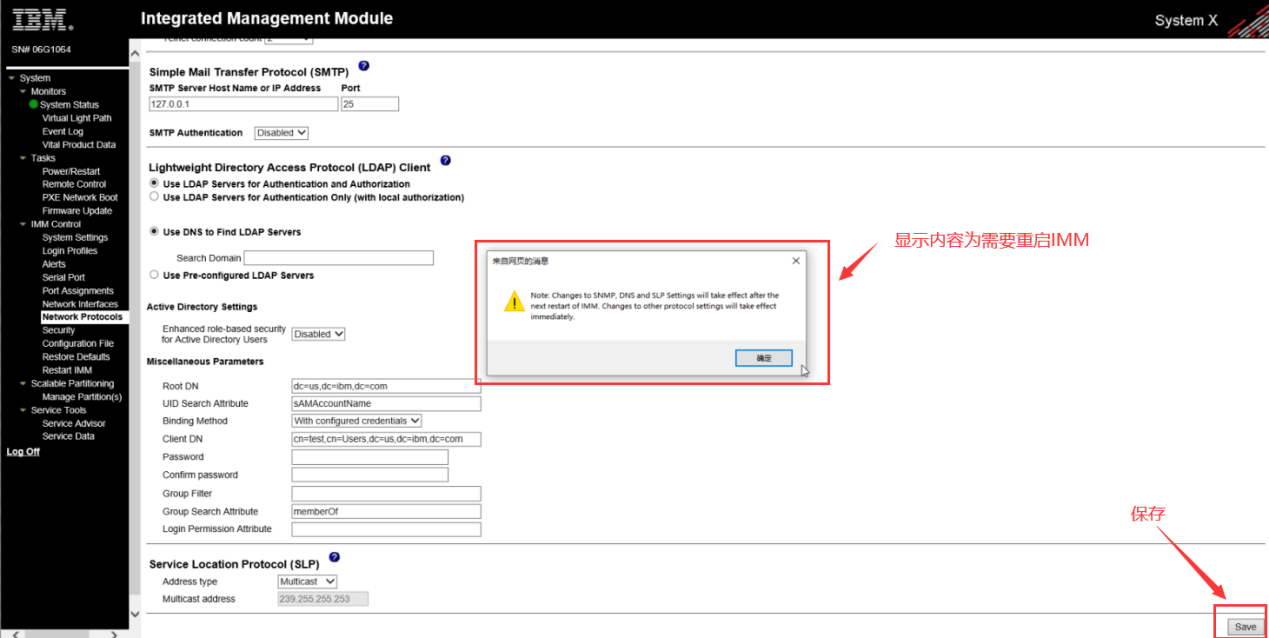 3、重启IMM。重启之后在下次登录就会SNMP配置就会生效。