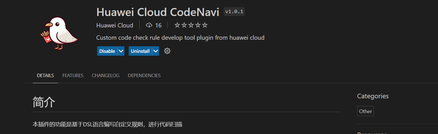 使用插件的链接安装: https://marketplace.visualstudio.com/items?itemName=HuaweiCloud.codenavi