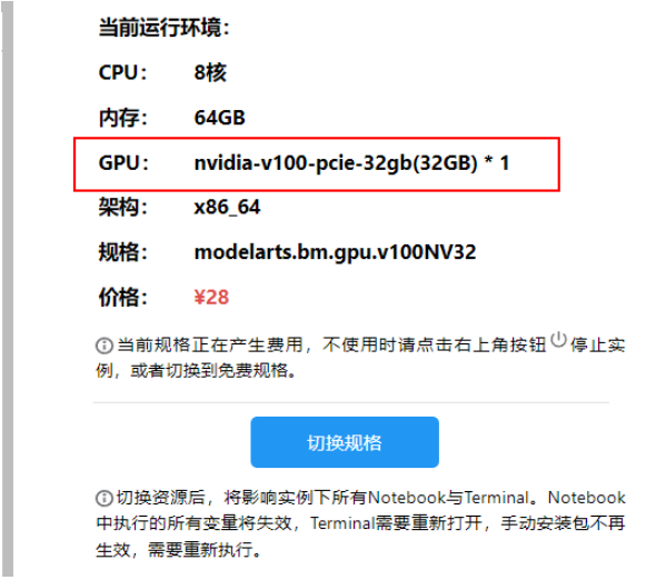 查看GPU型号,至少需要32GB显存