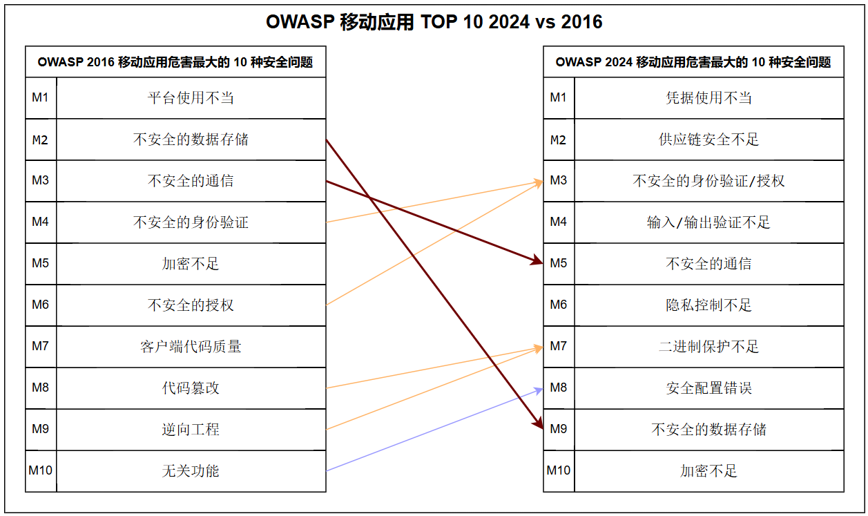 2. OWASP 移动应用 2024 十大安全风险 和 2016 相比