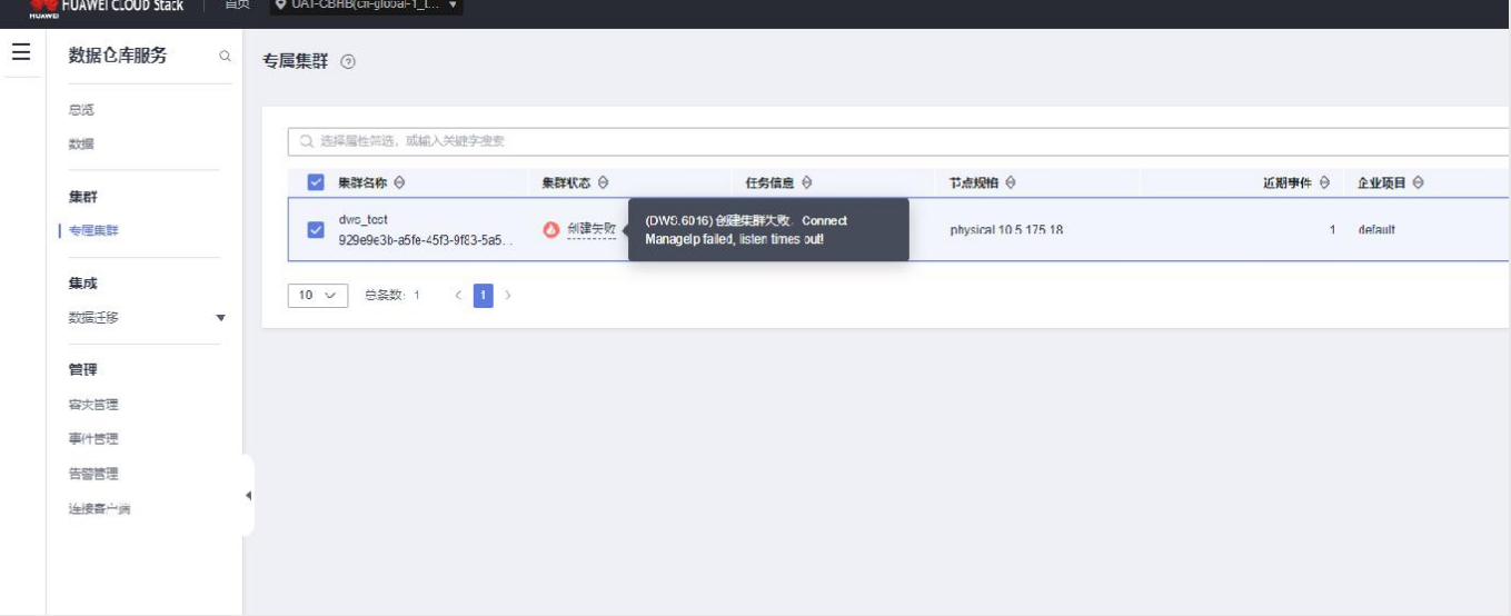 [HCS]DWS下发集群失败:管控面与内大网IP不通 DWS.6016