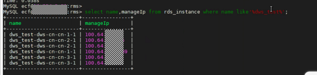 查询manageIP的sql:select name,manageIp from rds_instance where name like '%页面创建失败集群名称%'