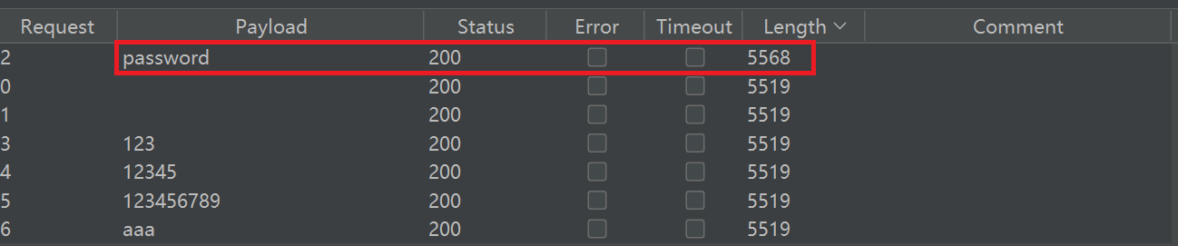 1.Pitchfork:多个参数同时进行遍历,只是一个选字典1,一个选字典2(相当于50m赛跑同时出发,只是赛道不同,互不干扰。爆破次数取决于最短的字典长度)