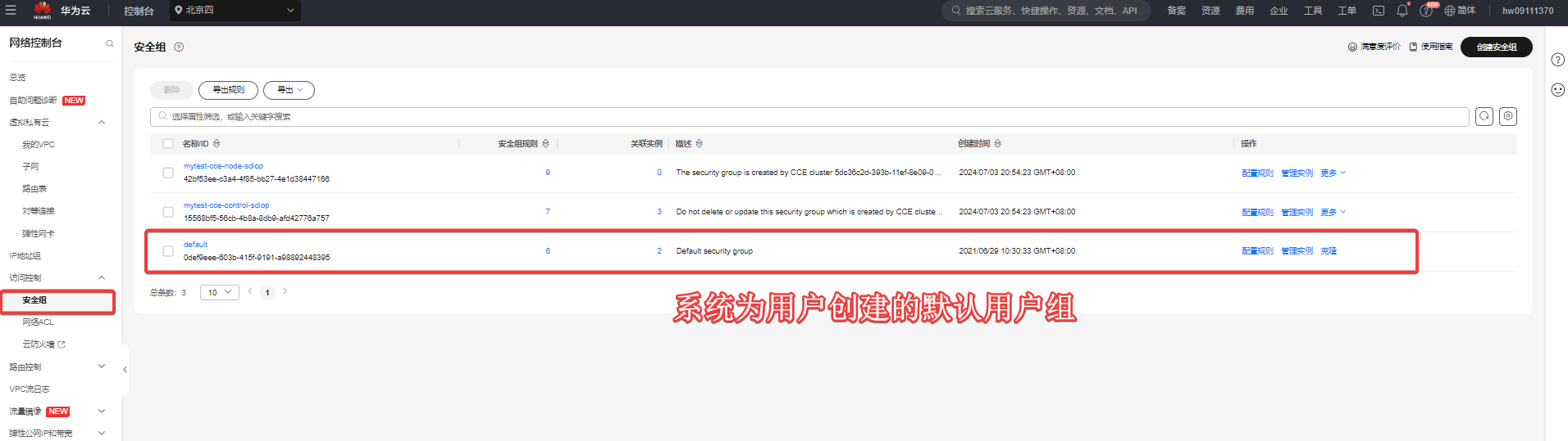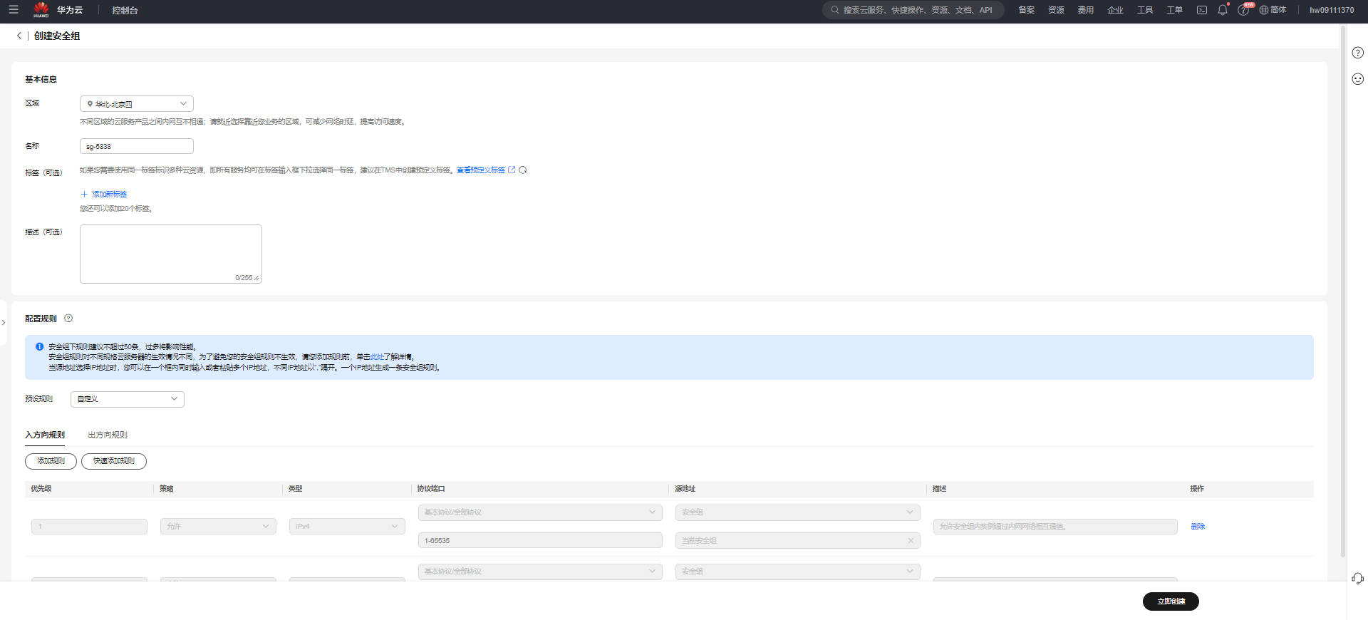 •华为云控制台中,可以创建、删除安全组,快速添加多条安全组规则等;