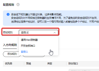 • 安全组内的云服务器不需要添加规则即可相互访问;
