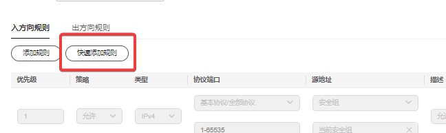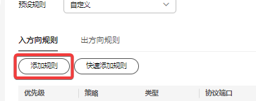 如果这些现成规则无法满足需求,就需要点击“添加规则”,来创建满足需求的“入方向规则”或者“出方向规则”了。