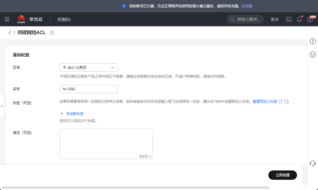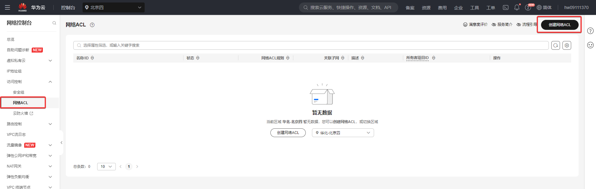 华为云控制台可以创建、查看、修改、删除网络ACL,修改ACL规则生效顺序。
