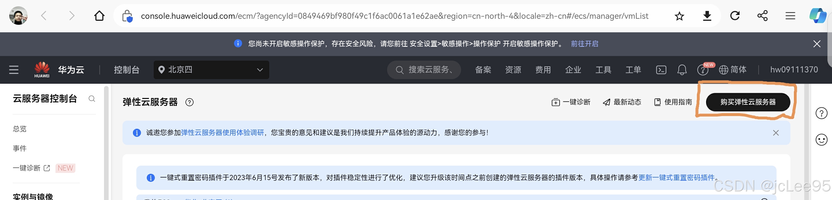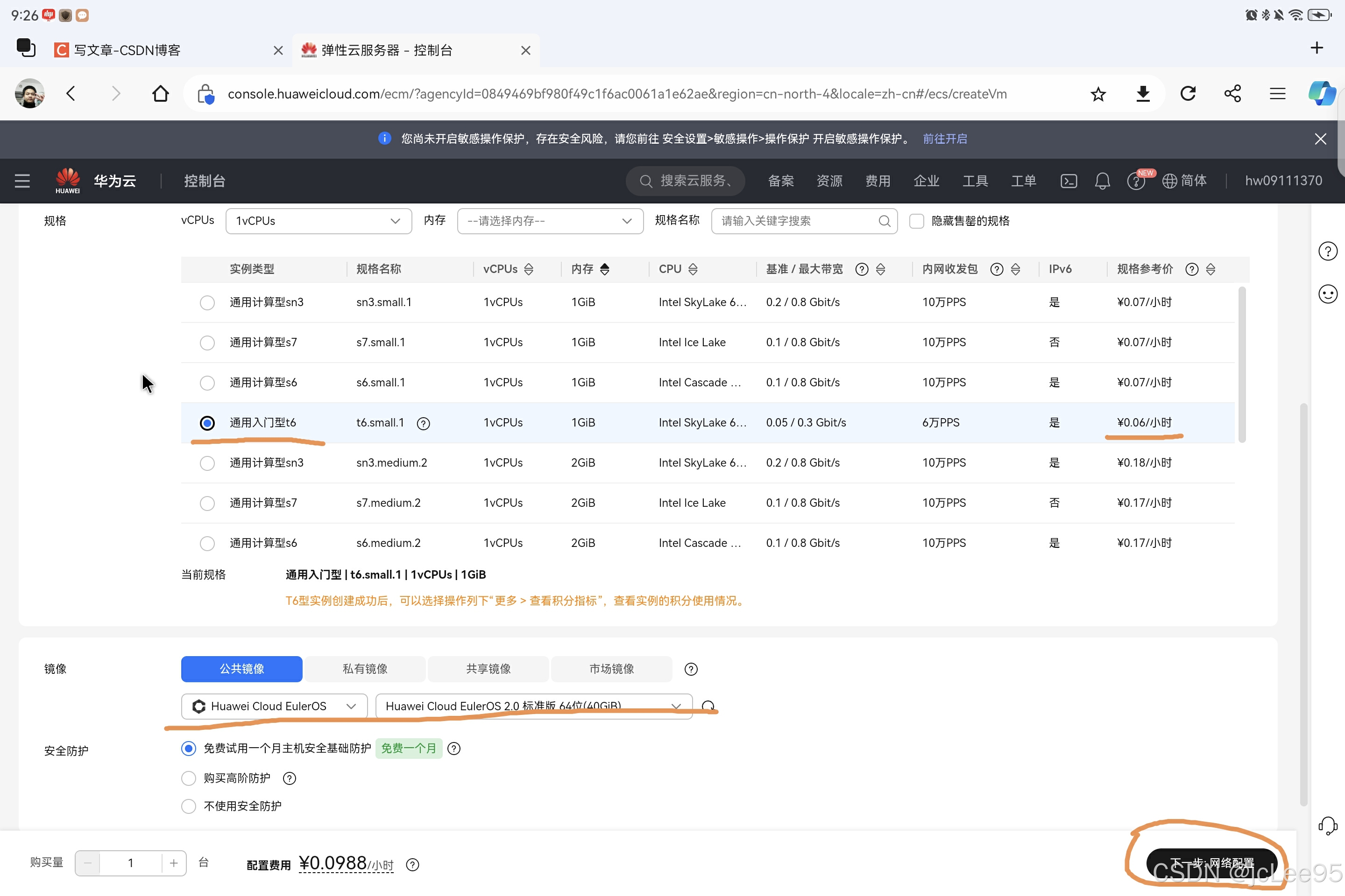 作为学习和验证,这里我们考虑尽可能地节省成本。在华为云首页搜索“ECS”(或者在登陆的前提下点击此文本的链接:华为云ECS)