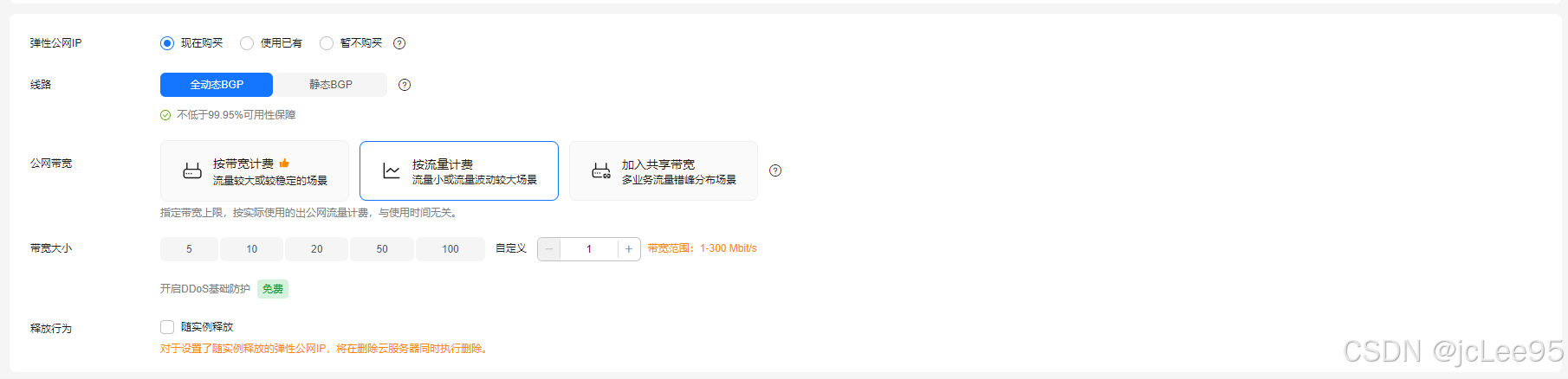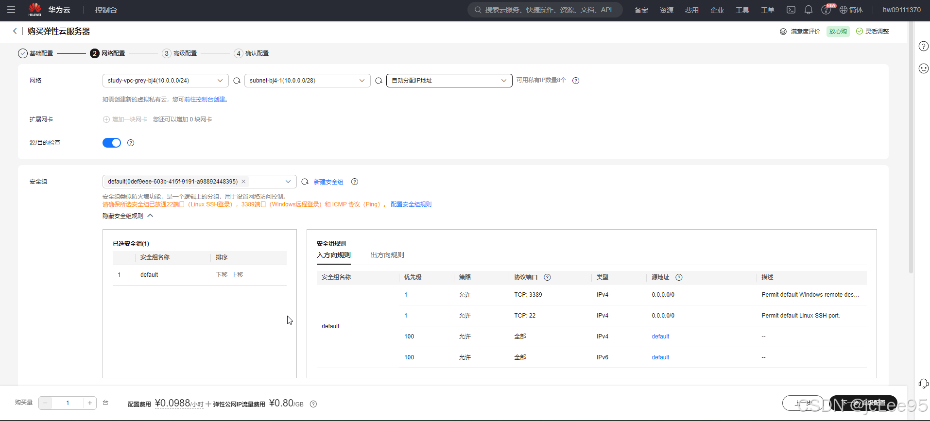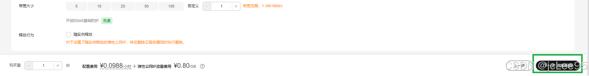 关于弹性公网IP,我们这里其实用不到,易名为我们这里使用私网进行通信。但是如果你的其它应用需要的话可以选择现在购买。