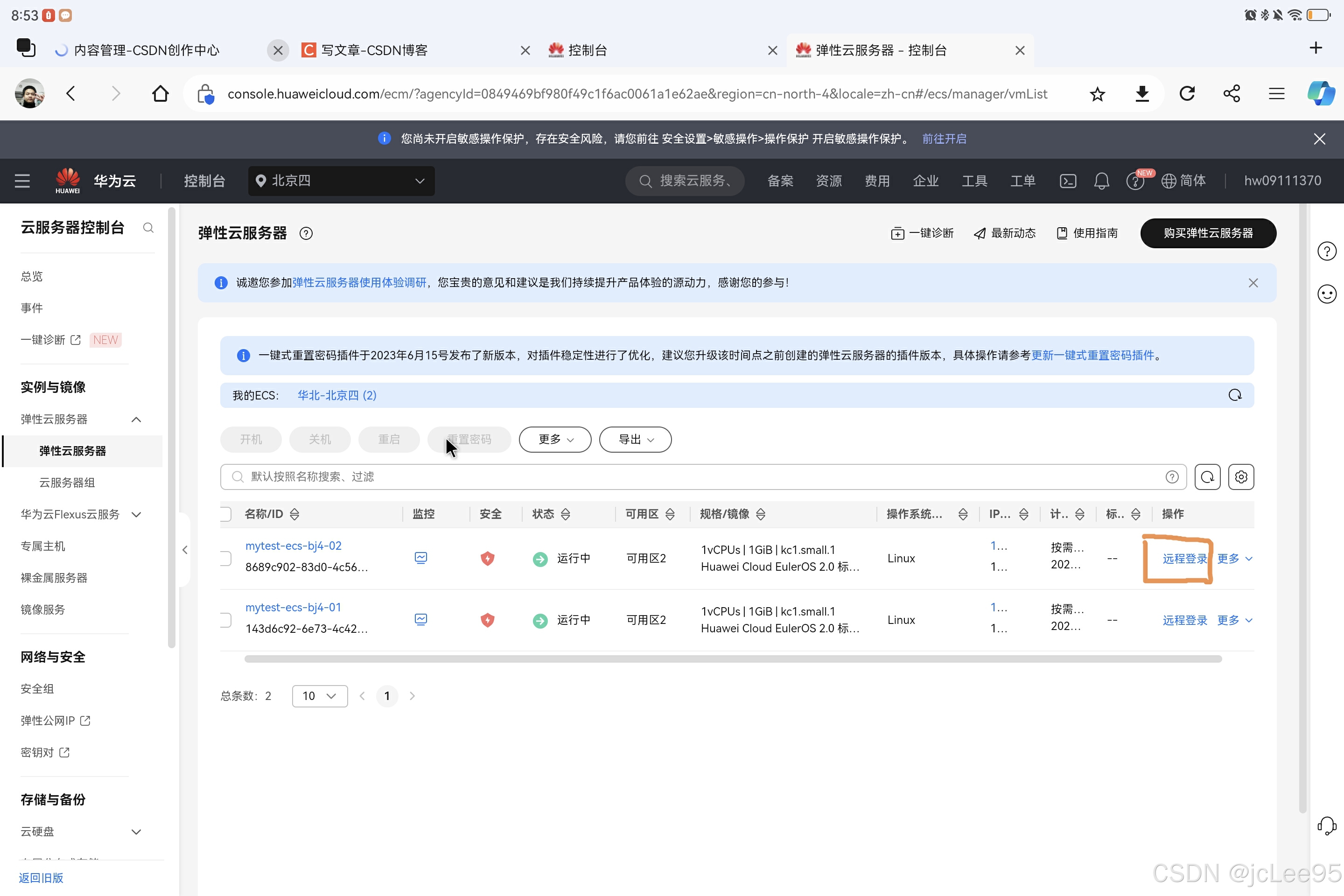 等待实例创建完成。最终我们先后创建了以下两台ECS实例: