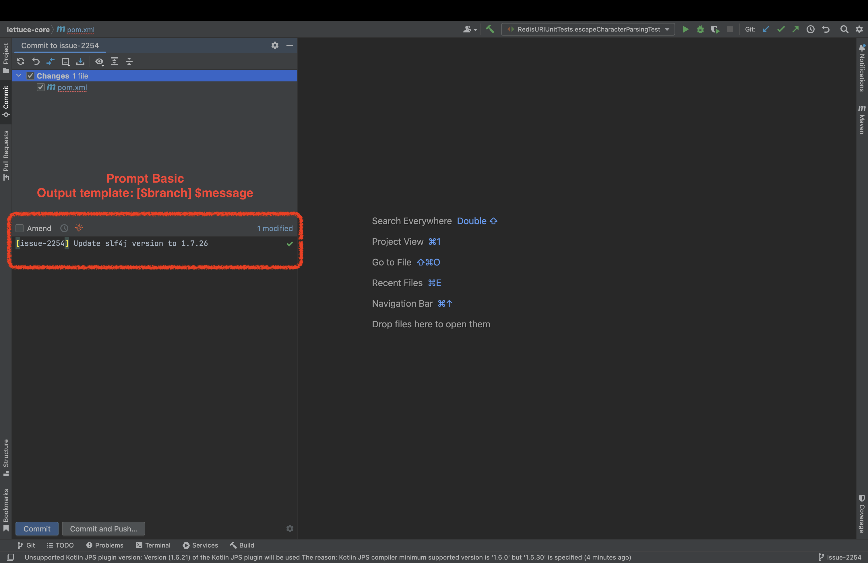 - Output template: 在选择 Basic 模式后可以通过模版定义生成的 commit message 的格式,模版中可以使用 $message 和 $branch 两个变量。