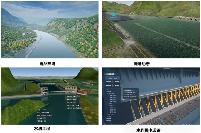基于L2和L3数据,通过用三维建模工具,建设自然背景、流场动态、水利工程、水利机电设备等4类可视化模型,为在业务应用中真实展现物理流域中各种水利业务场景提供支撑。