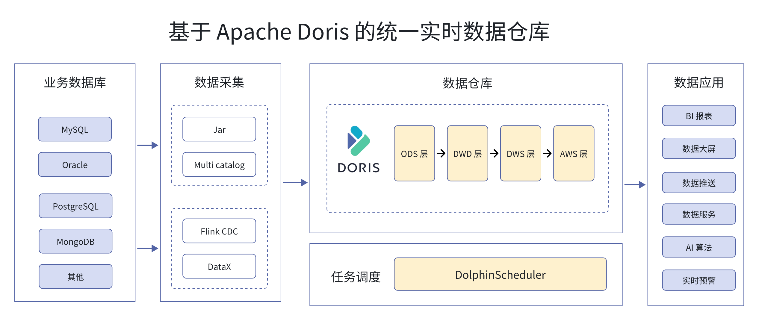 Apache Doris 引入后,我们对离线数仓及实时数仓进行全面升级及改造,构建了统一实时的数据仓库。