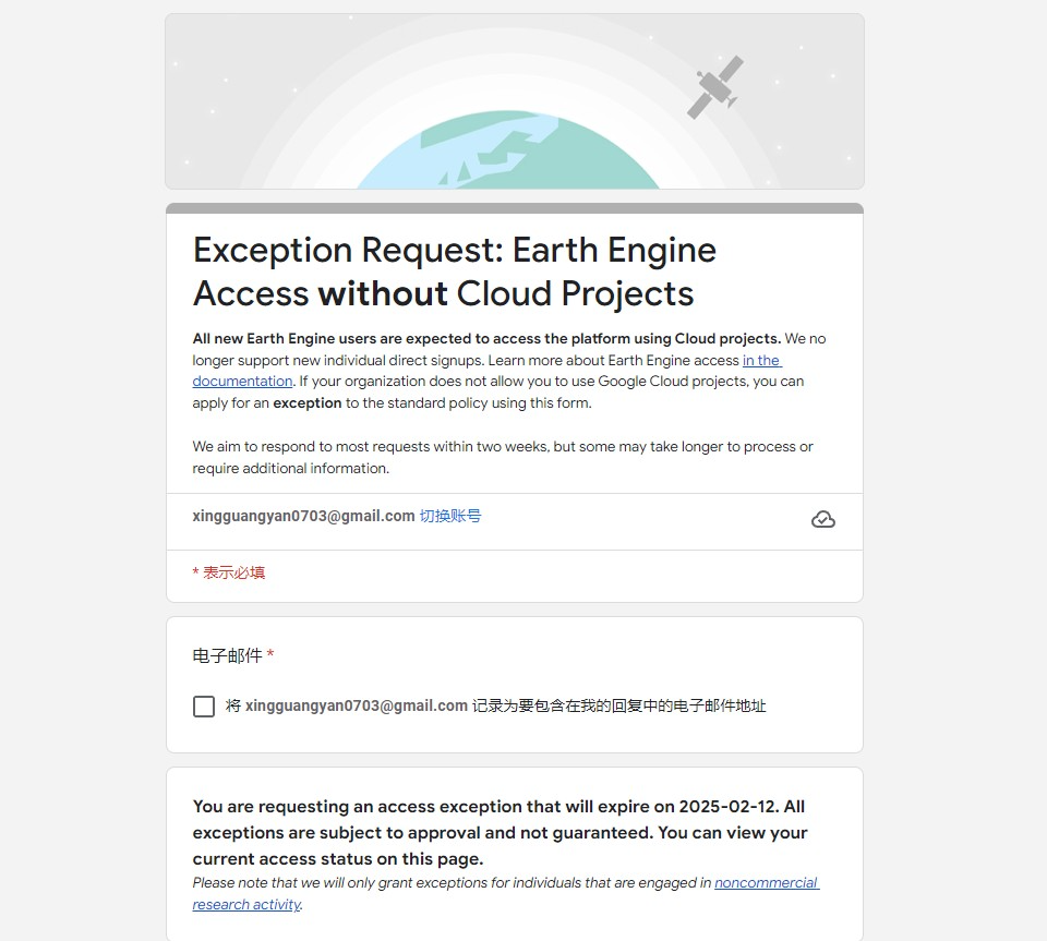 如果您有任何问题或需要进一步帮助,请联系Earth Engine Registration Support。 感谢您选择地球引擎。