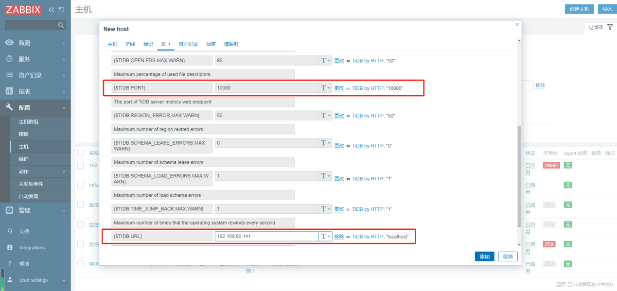 {$TIDB.PORT}:填写TiDB的接口端口,不是连接用的端口,默认为10080。