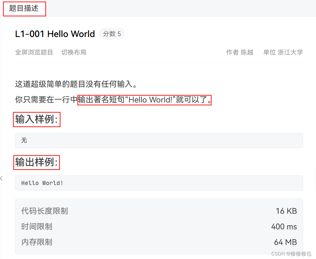 你只需要在一行中输出著名短句“Hello World!”就可以了。