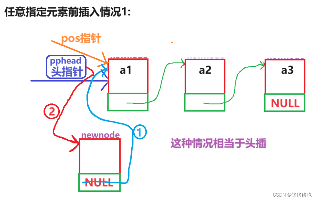 if (pos == *pphead)//相当于头插