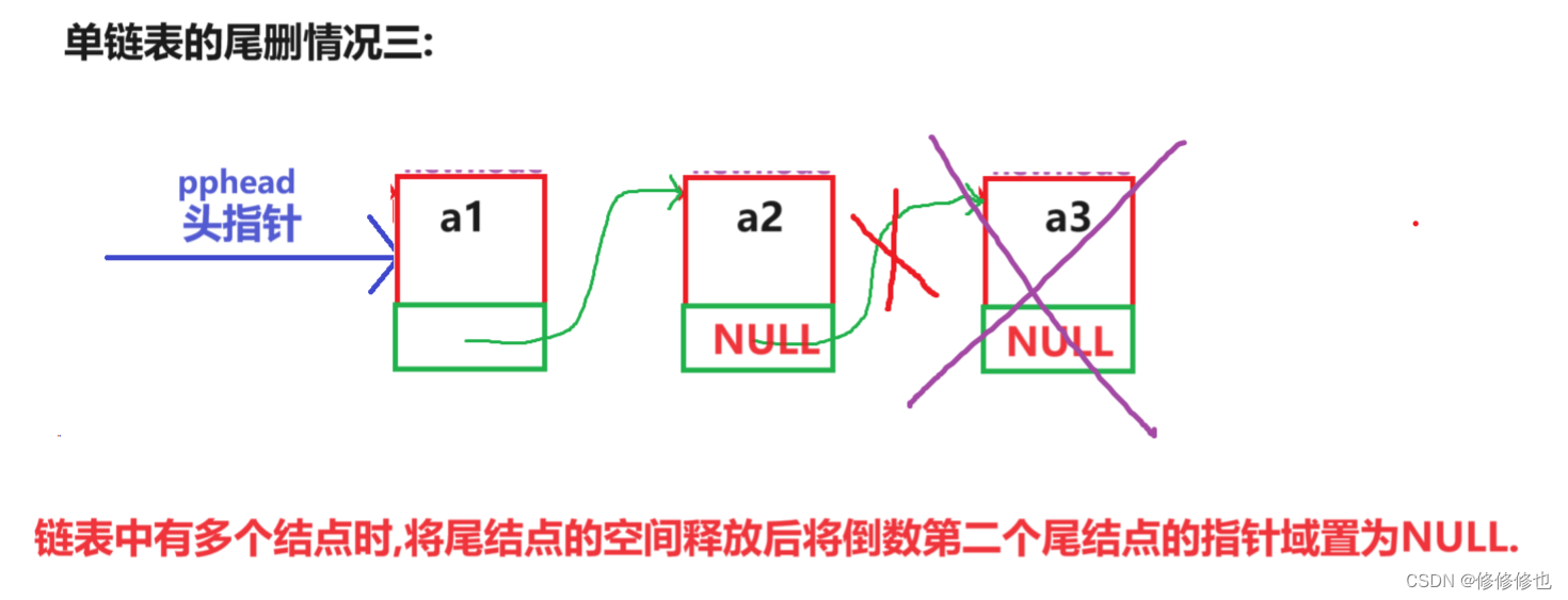 //单链表尾删
