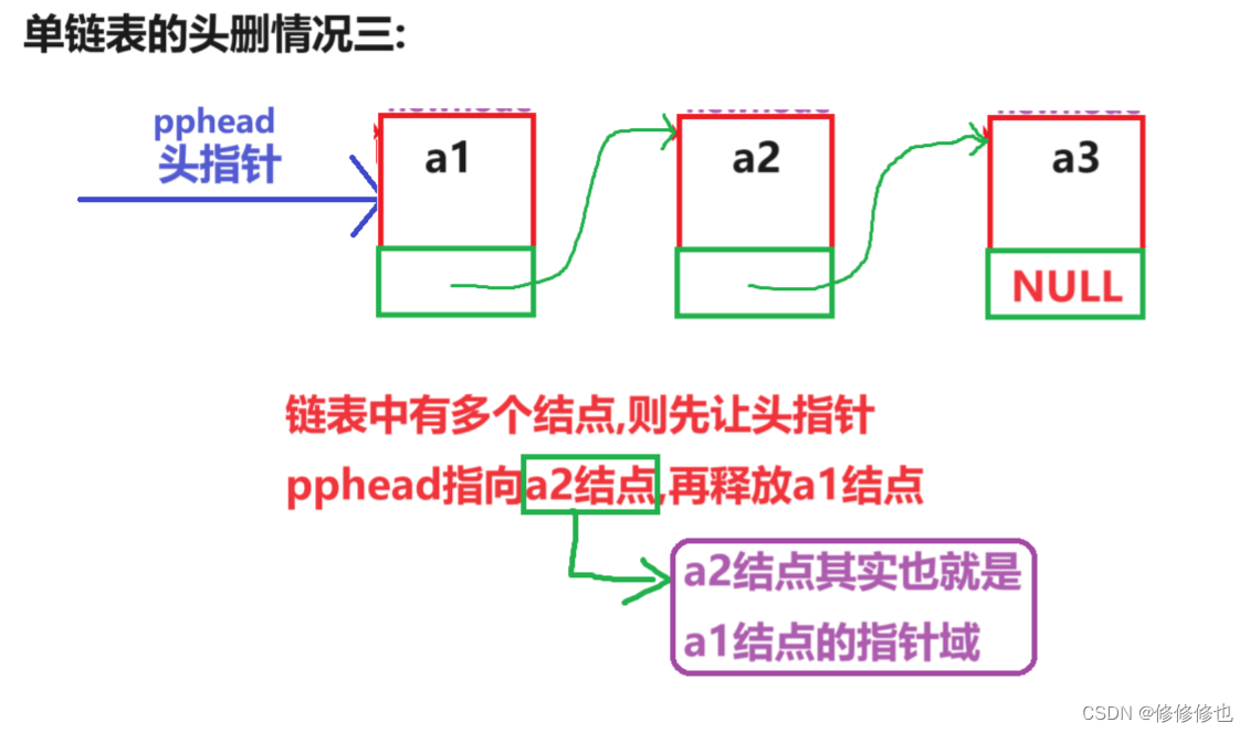 //单链表头删