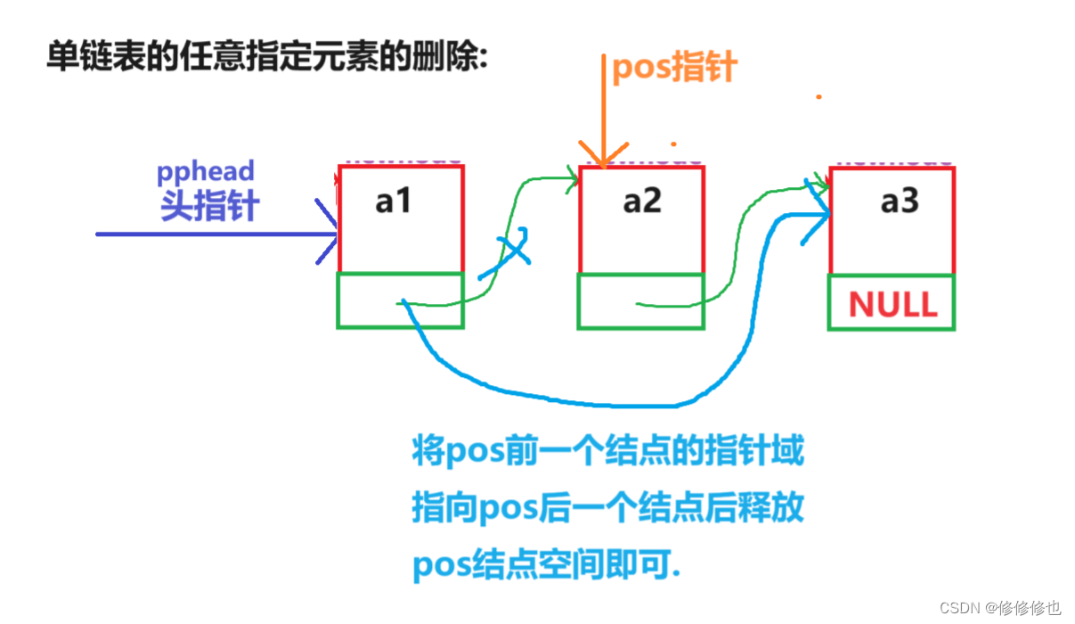 void SLTErase(SLTNode** pphead,SLTNode* pos);