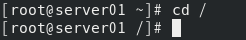 (2) 切换到根目录,用绝对路径表示。 [root@server01 ~]# cd / [root@server01 /]#