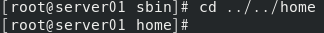 (5) 在第(4)题的基础上,使用相对路径,切换当前目录为/home. [root@server01 sbin]# cd ../../home [root@server01 home]#