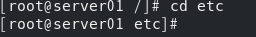 (3) 切换到etc目录,用相对路径表示。 [root@server01 /]# cd etc [root@server01 etc]#