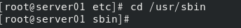 (4) 使用绝对路径,切换当前目录为/usr/sbin。 [root@server01 etc]# cd /usr/sbin [root@server01 sbin]#